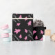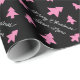 Papper för att stänga av rosa Julgranar mönster anpassningsbar Helgdag. Personligens presentrullar med hälsning och namn. Bakgrund till svart eller anpassningsbar färg. Roligtens x-mas-design för presenter. Lämpliga för barn och vuxnor.