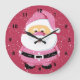 Den här väggklockan är en underbar och unik gåva till julhelgen. Det har ett anpassad design som visar ett glatt Jultomten som är klädt i rosa, omgivet av snöflingor på en ljus magenta. Den här klockan kommer att ge dig lite glädje och värme, eftersom du kan se tomten tittar på dig varje gång du kollar. Den här klockan är perfekt för alla som kärlek rosa och jul.
