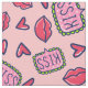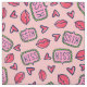 Cute Rosa Läppar Kisses & Hearts Doodle Patterned Tyg
