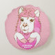 Cute Rosa Llama Sketch & Polka dots Llama Kärlek Rund Kudde