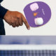 Cute rosa marshmallow efter tecknad av lägerbrand pingisracket
