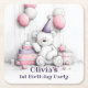 Cute Rosa Nalle 1:a födelsedag Party Underlägg Papper Kvadrat