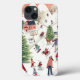 Cute rosa och grönt med rödband av mörk Alpine lodge skidlandskap helgdag jul