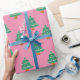 Cute Rosa och Grönt Julgranar Mönster Presentpapper