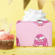 Pingviner med rosa i kute dekorerar roligtens pappra förpackning. Designen kommer från originalteckningen.