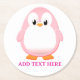 Cute Rosa Penguin Tecknad Anpassningsbar Underlägg Papper Rund
