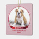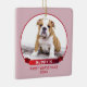Cute Rosa Puppy 1:a julfoto Ornament. Anpassa den här snygga prydnadsformen på julen med ditt sällskapsdjurs namn, foto och år. Ornamenten är i rött och rosa färger. Underbarare julklapp för dig eller en gåva till din familj eller dina vänner.