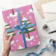 Cute Rosa & Snowy Träd Woodland Helgdag Presentpapper