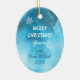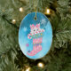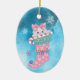 En ynklig, vit kattpek från en rosa snöflammande julstock. Kattungen bär en rosa båge och håller en röd och vit stripe candy cane. Några snöflingor går ner runt det. Allt placeras på abstraktens isig blå bakgrund. Baksidan av dekoratet har samma bakgrund, några snöflingor och anpassningsbarna i fem fält. Lätt att anpassa sig, och vilken liten flicka som helst skulle kärlek den här vackra prydnaden!