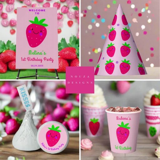 Cute Rosa Strawberry 1:a födelsedag Party Flicka Inbjudningar