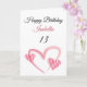Cute Rosa Stripe Pawareart 13:e födelsedagen Kort