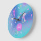 Cute Rosa Teal Sea Snäckor Sjöjungfru Monogram Stor Klocka