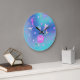 En vit, magisk illustration av ett under havs- eller havslandskap med sjöjungfruar, snäckor och bubblor i rosa, lila, teal, akvarier och bevattning, regnbåge, dekorerar den här personligens väggklocka som du kan anpassa med namn och ett monogram. En underbar babydusch, födsel, födelsedag eller julklapp till en flicka eller kvinna som kärlek sjöjungfruar, havet och havet.