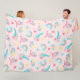Cute Rosa Teal Unicorn Rainbow Blommigt Stars Fleecefilt