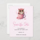 Cute Rosa Uggla i ett Kopp Spara datum Inbjudan Vykort