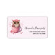Adressetiketter med en förtjusande bild av uggla sitta i ett kaffe mugg. Hjärter hovrar runt och ett enda ro placerat vid kopp grund.