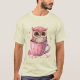En t-shirt med en förtjusande bild av uggla sitta i ett kaffe mugg. Hjärter hovrar runt och ett enda ro placerat vid kopp grund.