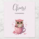 Cute Rosa Uggla i Kopp Vinflaska Etikett