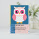Den berömvärda uggla-temade babyduschinbjudan med en charmerande rosa och vit uggla med festkonfekt. Perfekt för skogsteman eller firande gender-neutralt. Hämta och anpassa din inbjudan till en unik babyduschupplevelse.