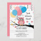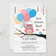 Cute Rosa Uggla med ballonger och konfetti babysko Inbjudningar