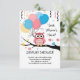 Cute Rosa Uggla med ballonger och konfetti babysko Tilläggskort