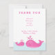 Cute rosa mamma och baby val i isigens blå hav med tack till det vita himlar. Personlig med mamma till namn redan, så allt du behöver göra är att anpassa meddelandet. Eller lämna tackmeddelandet för ett tomt utrymme för handskrivet tackkort. Perfekt tack för rosa nautiskt temade babyduschar!