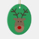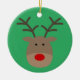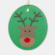Rudolf renens tecknad Julgran Ornament. Anpassa med anpassningsbar eller foto på baksidan. Lägg till hälsning eller önskemål som God jul eller Glad helg! Lustigt tomtens hjort med rött näsa.