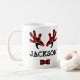 Cute Rustic Buffalo Play Reindeer Antlers Namn Kaffemugg