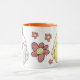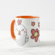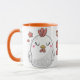 Sitt ner din favoritdryck i hetten i det här vackra, rustiska kycklingarna mugg. Två söta hand plockade-kycklingar, en i vitt och en i gult. Kycklingarna accentueras med stjärnor och röda blommor. Perfekt för kyckling och kaffe älskare i ditt liv. Clipart by Capuerza Sketch.