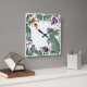 Cute Rustic Teal Rabbit Bunny Blommigt Folk Tile Fyrkantig Klocka