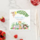En söt papper napkin för en dusch i pojke har vattenfärgsillustrationer av safari-djur med djungelgröna accents Personalisera med hedersgästen namn och duschdatum. Modern typografi i blått och grått