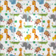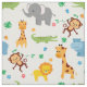Djuren i den uråldriga djungelns plantskoleväv med små giraffer, elefanter, alligator, hippopotamus och apor på grenar. Perfekt för förskolsdeka och andra baby-relaterade projekt.