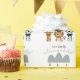 Den här söta babyduschpresenten för anpassningsbar som innehåller pappra inslag är ett baby djur-tema för boho. Tre söta safaridjur spädbarn - en giraffe, ett lejont unge och en zebra - står tillsammans under ett regnmoln. Den ärliga, boho färg är könsneutral, så den är lämplig för en dusch i pojke eller flicka.