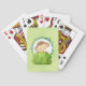 Spelkort med en tecknad illustration av att en liten apa håller på att plocka ut från baksidan av en grönt buh. Omgiven av en andedräkt av tropiska löv. Ange en oliv grönt vattenfärgsbakgrund.