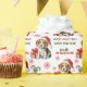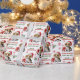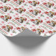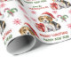 Det upprepade mönster på detta papper om julomslag innehåller en bild av en ynklig beagles valp med en röd julhatt med en Helgdag paket bredvid honom. Röd text och grönt säger GOD JUL" och "Gott nytt år" med anpassningsbarna namnteckning nedan. Andra bilder som ingår i mönster är rött dekorativt snöflingor och polkagrisar.