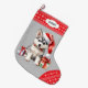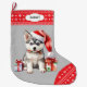 Cute Santa Hat Husky Puppy Snowflake Gräns Stor Julstrumpa