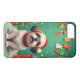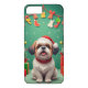 Cute hund med en julhatt och en rödhals framför en festlig bakgrund