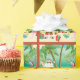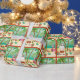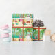 Denna julomslutning pappra har söta och färgstarka tropiska fåglar som bär julhattar. De går på stranden för att träffa tomten under en handflatan träd som är dekorerad med prydnadsföremål och ljus.