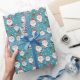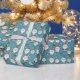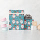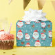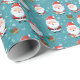 Cute Santa-gåvan är papper. Luta små Santas på ljusblå bakgrund.
