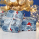 Skapa adsible decoupage-hantverk eller använda detta papper om du vill figursätta dina helgdag. Denna pappra bakgrund är vintersäsong med en grått-ekorre med en julhatt. Dekorren håller ett rött Julklapp. En unik design som barn och vuxnor kan använda.