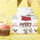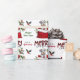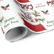 Det upprepade mönster på denna söta julomslutning papper är en bild av en berömvärd Schnauzer Terrier-hund som tittar ut från en röd och vit Helgdag-presentsäck. Bakom honom ligger en sprit av grå och röda bär. En röd och svart bullfinkfågel kommer snart att landa. God jul" står i texten till den stiliserade röda och svarta buffelstolpen och "Gott nytt år" står i grönt. Din egen namnteckning finns i två fält för att du ska kunna anpassa dig. Se till att du ser de matchande presenternas märkre.