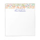 De här anteckningsblocken för lärare har en söt gräns mönster av orange, grönt och blåa skribenter på vit bakgrund. Rubriken "FRÅN DESK OF" har en namn nedan för att anpassa sig till moderna handskrivna skript. Från våra hjärtan till era, njut!