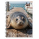 An adorable personalized notebook featuring a cute seal sitting on a boat dock by the ocean just look sweet as can be.