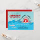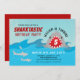 De här pojkarna födelsedagsfest inbjudan har en hajtematdesign. Utformningen har en stor hajmun och tänder som accentueras av blå vatten vågar. Barnets ålder är i hajmunnen.