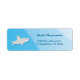 Returnera adressetikett med en söt haj på blå bakgrund. Etiketten innehåller mallar för ditt namn och adress.