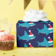Papper med söt, leende, blåhaj i tomten på blå bakgrund.