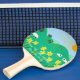 The original and cute illustration on this original and fun ping pong bat is a painting in a "nieve" sort of style, it's bright and colorful. The picture shows some white and fluffy black faced sheep grazing behind daffodils on the hillside as the large sun shines down upon them. In the background you can see small leaf covered trees with red apples on them. This unique colorful bat has the fun slogan "May the sun always shine on Ewe!" and is suitable for people of all ages.