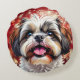Julkudden Shih Tzu valp hund med röd och vit snöbakgrund.