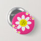 Den här knappen innehåller vita blommor med bakgrunden shock rosa och finare-bokstäver för anpassning.