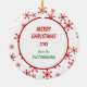På framsidan av denna Helgdag är ornament en söt grått Siberian husky-valp med en sockel och en buckslips. Bredvid honom är en blå stripe julklapp. Bilder placeras på en vit oval som är inramad av en retro röd snöflinga mönster. Baksidan av dekoratet har samma bakgrund och ovaler med anpassningsbarna i två fält. Cute! *Tack vare Gift Season Shop för hund i den här designen.